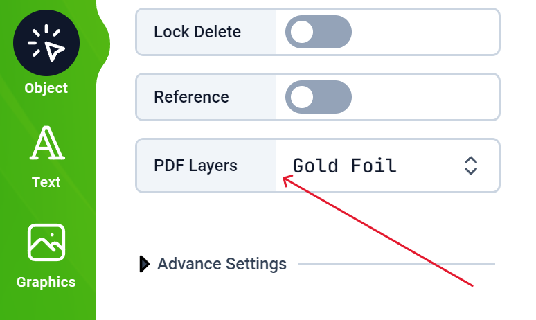 Click the Object Icon on the left panel and you will see the PDF Layers option blank. Click to assign the layer to that object.